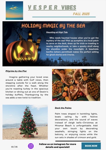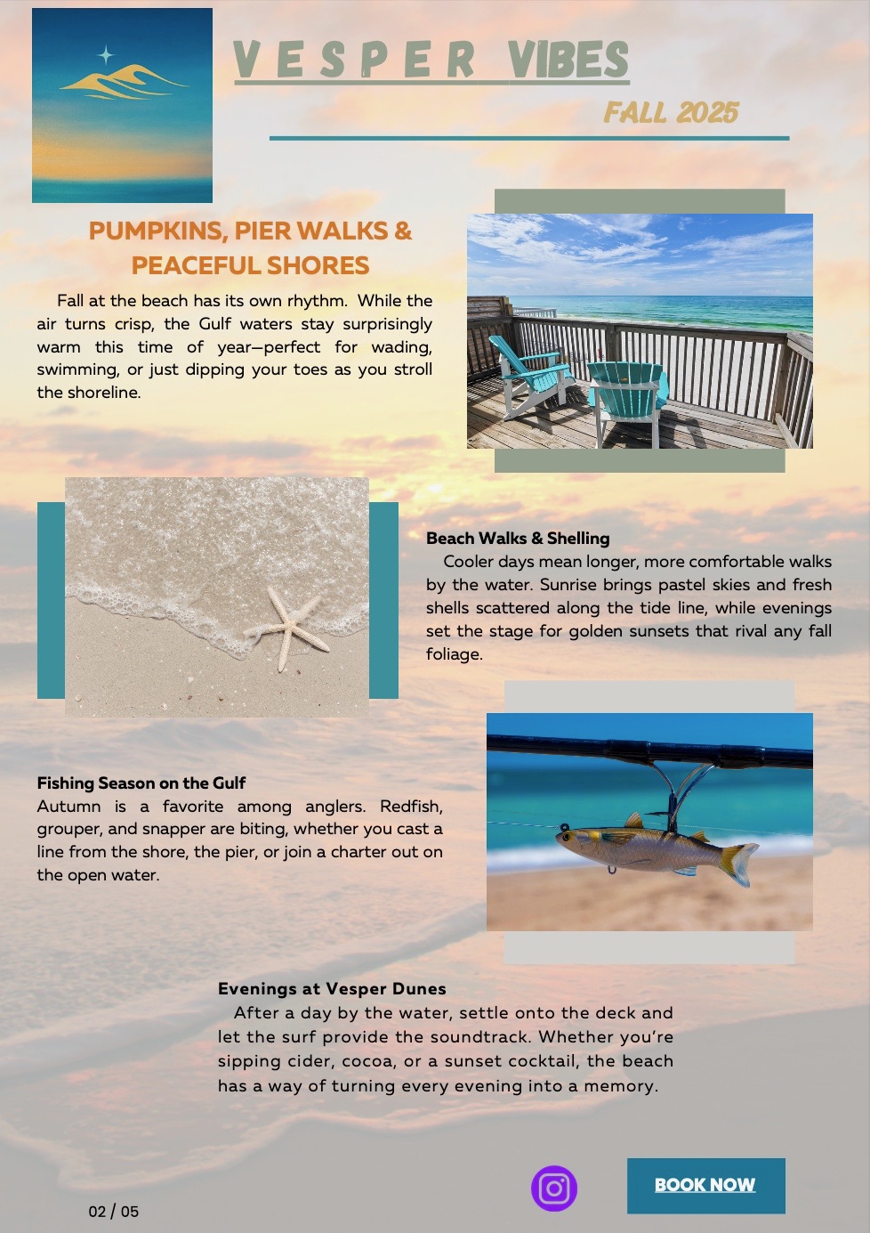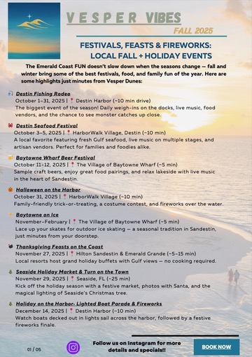 Autumn may be cooling the air, but the Emerald Coast is still warm and sparkling! From beach walks to bonfires, Vesper Dunes is where the holidays start early.